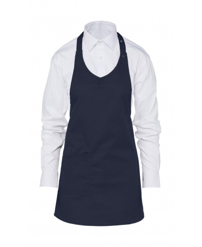 This comfortable short bib apron has a V-neck style with press stud adjustable neckband is smart and functional thanks to its patch pocket, easy care poly-cotton fabric and great washability – 60° for all colours. It's a practical and durable choice.