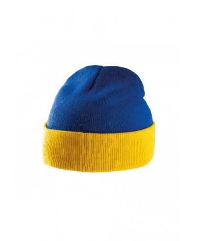100% acrylic. Knitted beanie hat with contrast turn-up.