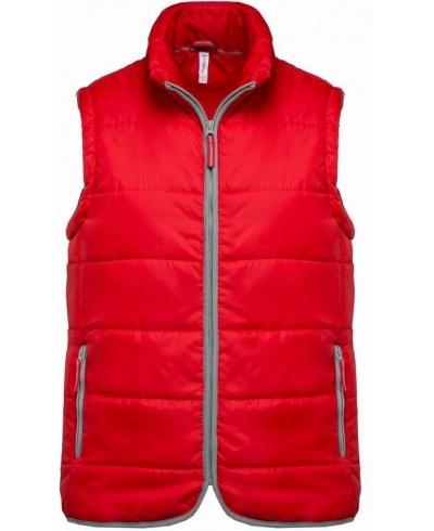 Outer: 100 % polyester ripstop with acrylic coating. Polyester inner padding. Polyester lining 210 T. Comfortable and modern. 2 zipped outer pockets. 1 inner pocket with tear release fastening. Grey contrasting zip and grey contrasting binding at front opening, pockets and hem. 1 zip at chest and 1 zip at hem for decoration access.