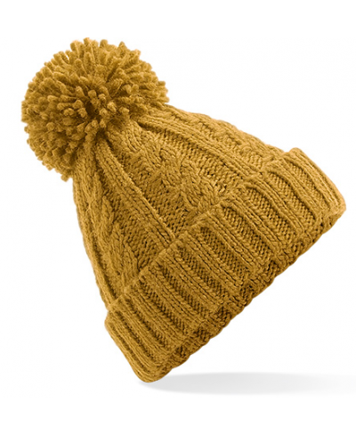 TearAway label for ease of rebranding, heavyweight melange cable knit, self-coloured pom pom, hand-knitted feel, Suprafleece® thermal band, cuffed design for optimal decoration, available in Junior (B480b) and Infant (B480a) sizes