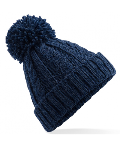 TearAway label for ease of rebranding, heavyweight melange cable knit, self-coloured pom pom, hand-knitted feel, Suprafleece® thermal band, cuffed design for optimal decoration, available in Junior (B480b) and Infant (B480a) sizes