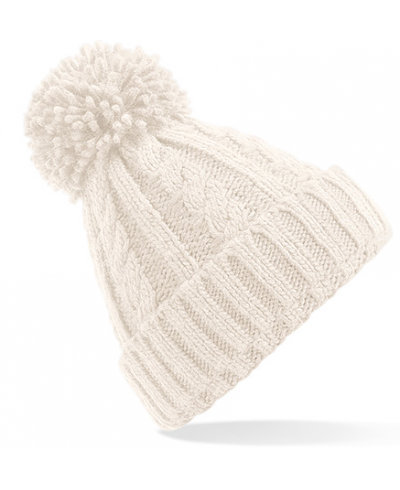 TearAway label for ease of rebranding, heavyweight melange cable knit, self-coloured pom pom, hand-knitted feel, Suprafleece® thermal band, cuffed design for optimal decoration, available in Junior (B480b) and Infant (B480a) sizes