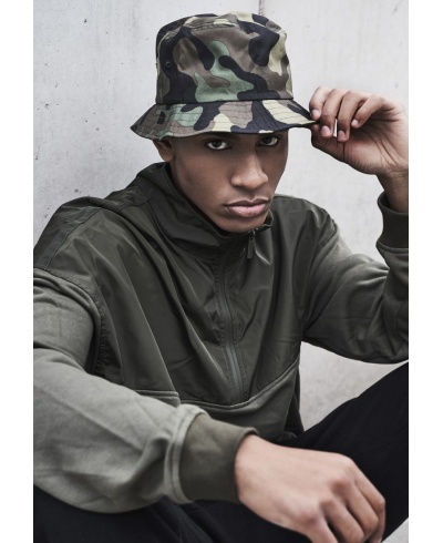 Camo always works! This bucket hat in green camouflage pattern proves it. Put in on, leave the house and start your adventure – equipped with this hat this should be an easy thing to do. The style includes a circumferential brim complete with decorative stitching.