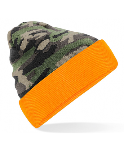 TearAway label for ease of rebranding, Jacquard camo design, double layer knit, cuffed design for optimal decoration