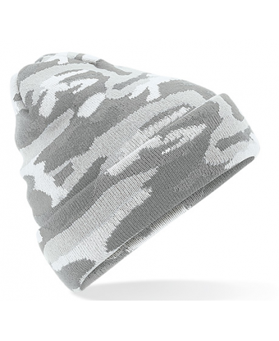 TearAway label for ease of rebranding, Jacquard camo design, double layer knit, cuffed design for optimal decoration