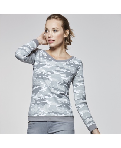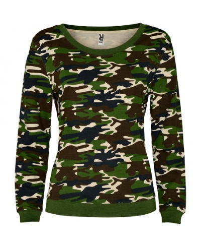 Printing camouflage sweatshirt, rounded shaped squared neck and ribbed trim colour. 1x1 rib knit with elastane in waist and cuffs.