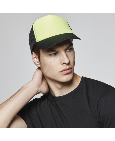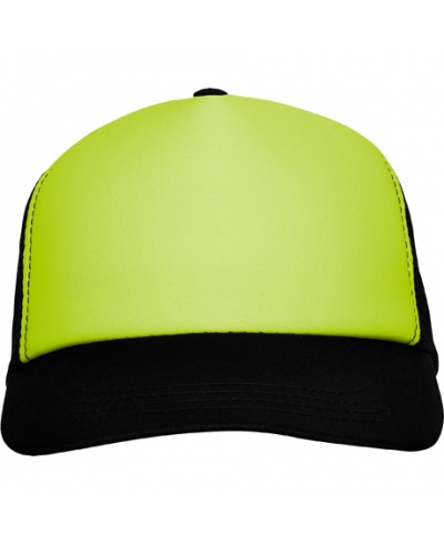 Cap with half back in mesh fabric for ventilation, overlapping plastic closure, antiperspirant inner belt. Inner covered seams to tone. Central panel in special fabric for sublimation, visor with four seams and ornament stainless button.