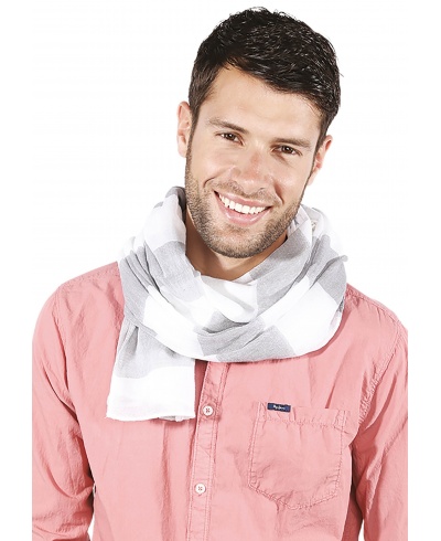 100 % Cotton Voile - Light weight wide striped two-colour scarf -