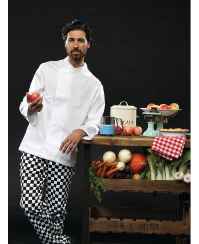 Premier’s culinary long sleeve chef’s tunic comes in a pull on design with a single press stud closure for a quick, easy fastening. The fabric has a soft hand feel and is specifically engineered for user.