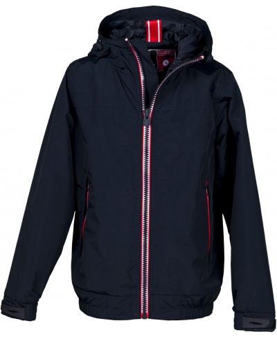 Children’s/boy’s lightweight jacket with 8 mm contrasting zip, shaped hood with two seams and drawstring, elasticated waist, elasticated and adjustable cuffs, two outer pockets with concealed zip. Unpadded, mesh lining, one inner zip pocket with opening for smartphone headphones, zip on the back and chest for easier printing and embroidery