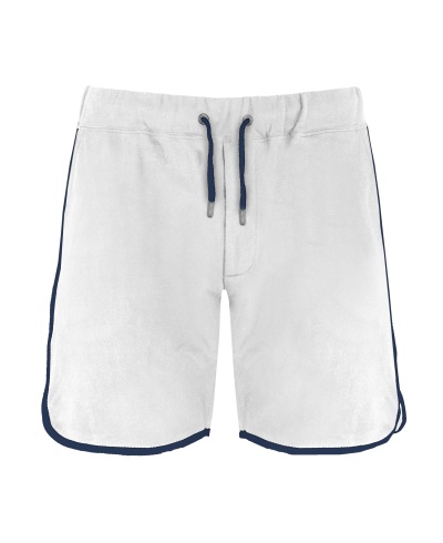 Children’s sweatpant Bermuda shorts with stretch waist and drawstring, fly with zip, two front pockets and contrasting trim