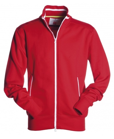Children’s sweatshirt with full, contrasting coloured plastic SBS zip with double metal pull; rib collar with contrasting trim, side pockets with contrasting trim, fitted sleeves, two outer pockets with contrasting zip, stretch rib cuffs and hem, reinforced seams