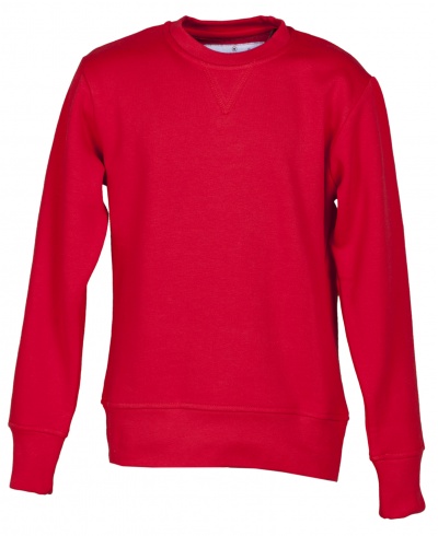 Children’s crew neck sweatshirt, V-design neck stitching, fitted sleeves, stretch rib cuffs and hem, reinforced seams