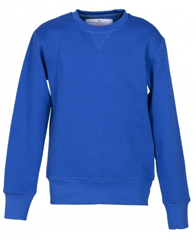 Children’s crew neck sweatshirt, V-design neck stitching, fitted sleeves, stretch rib cuffs and hem, reinforced seams