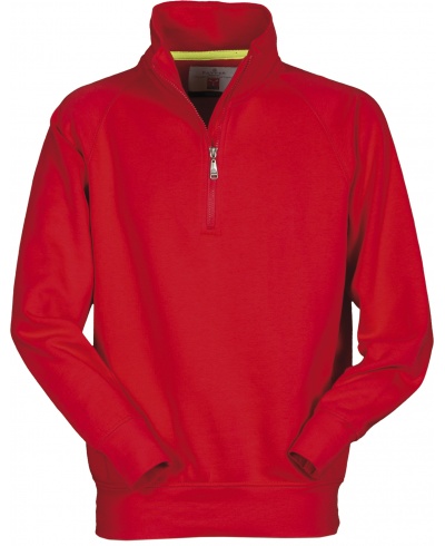 Children’s sweatshirt, with matching half zip in plastic with metal pull, raglan sleeves, stretch rib cuffs and hem, reinforced seams