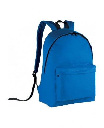 Backpack in polyester 600D PVC backing, zipped front pocket, padded back, ergonomic adjustable straps. SBS zips. Junior version of model KI0130.