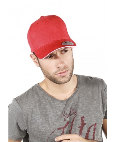 100 % brushed cotton. 6 panels. High-quality classic design. Curved mid-profile peak with contrasting sandwich peak except for Black / Black, Navy / Navy and White / White. Size adjuster with tear release fastening.