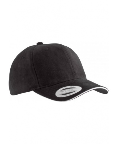 100 % brushed cotton. 6 panels. High-quality classic design. Curved mid-profile peak with contrasting sandwich peak except for Black / Black, Navy / Navy and White / White. Size adjuster with tear release fastening.