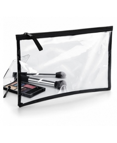Transparent, water-repellent fabric, Polyester binding and zip in contrast color, reinforced zip closure, TearAway label for ease of rebranding. Dimensions: 28 x 19 cm; Maximum print area: 25 x 16 cm