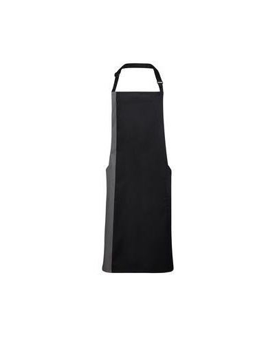A classic full bib Apron with a contrast coloured panel appearing along the length of the right hand side. Featuring two slanted pockets to the side.