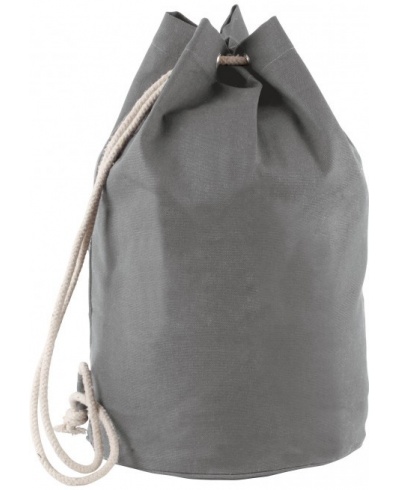 Cotton canvas sailor style bag 310 gsm with thick drawstring straps and slide fastening.