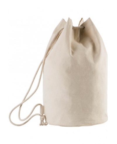 Cotton canvas sailor style bag 310 gsm with thick drawstring straps and slide fastening.