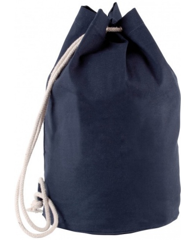Cotton canvas sailor style bag 310 gsm with thick drawstring straps and slide fastening.