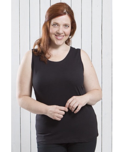Tank top. Bell shaped. Single Jersey. Double stitch on bottom. 1x1 rib neck and armhole.