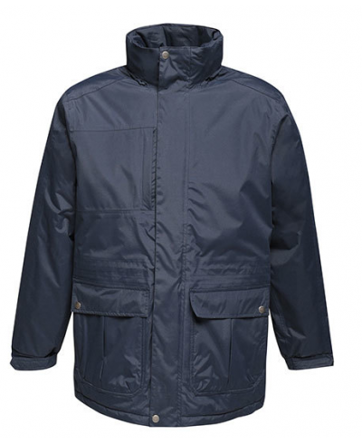 Waterproof Hydrafort 5000 peached polyester fabric, windproof fabric, Thermo-Guard insulation, taped seams, 160 GSM body insulation wadding weight, concealed hood with adjusters, adjustable cuffs, 2 lower pockets with zipped handwarmers and 2 lower cargo pockets, mobile phone pocket, inner security pocket and zipped chest pocket, concealed zip entrance in lining for embroidery access