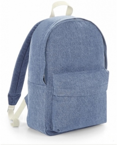 Material: 100% Soft Cotton Denim; Dimensions: 43 x 28 x 15 cm;Capacity: 14.5 litres; TearAway label for ease of rebranding, zippered front pocket, internal slip pocket, grab handle, padded back panel, padded adjustable shoulder straps