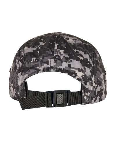 Equipped with a straight visor and a large front panel, this jockey cap is an original eye-catcher. The traditional style highlight of the cap is its multi camouflage pattern. The visor is being completed through decorative seams. At the back, a buckle closure takes care of individual size adjustment. It is made of durable polyester.