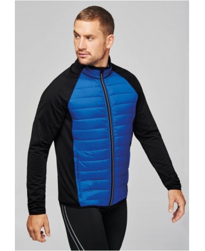 Outer: body 100 % polyamide ripstop, sleeves and back 90 % polyester / 10 % elastane. Inner padding : 100 % polyester. Ultra-comfortable fabric with water repellent treatment. 2 zipped front pockets. Contrast zip. Elasticated tape on neck, sleeves and hem.