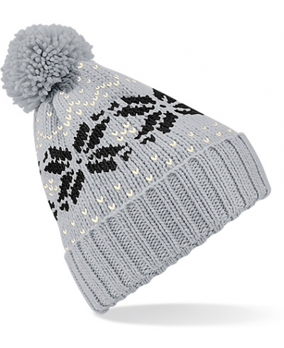 TearAway label for ease of rebranding, classic styling, self-coloured pom pom, cuffed design for optimal decoration, timeless Fair Isle pattern