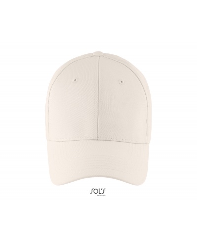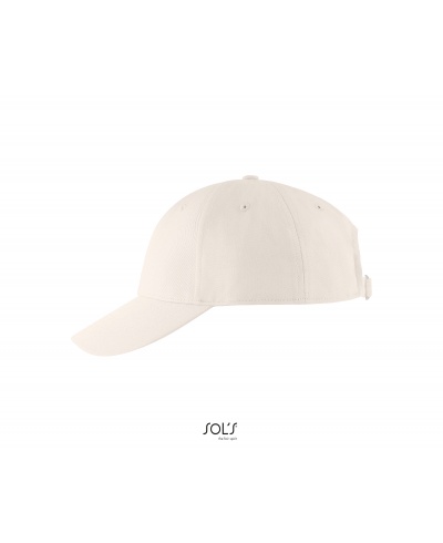 QUALITY : TWILL 285 - 100% unbrushed cotton; Six panels, Structured front panel, Pre-curved peak, Cotton twill padded headband, 6 embroidered eyelets, Modern adjustable back fastening with metal buckle