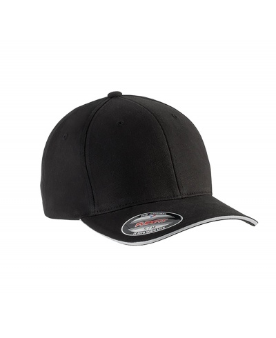 98% heavy brushed cotton / 2% elastane. 6 panels. Medium profile peak with curved edges and contrasting sandwich peak. Reinforced inside crown to maintain shape. Flexfit ® technology with elasticated band for added comfort and support.
