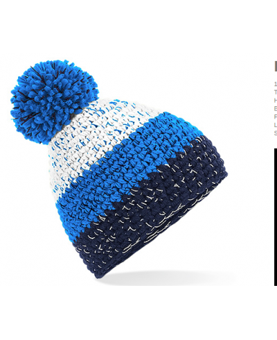 TearAway label for ease of rebranding, Hand-knitted, bold three colour stripe design, pull-on style, luxury pom pom, Suprafleece® thermal band
