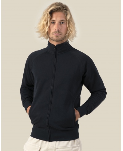 Men's sweatshirt with full invisible zipper and high collar with side pockets.