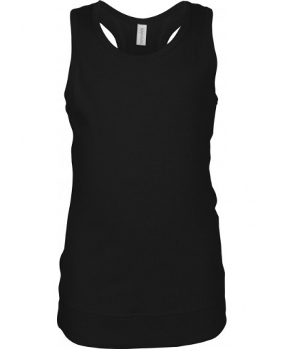 100% cotton. 1x1 rib. Racer back style. Twin needle finishing.