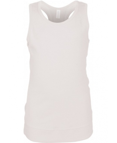 100% cotton. 1x1 rib. Racer back style. Twin needle finishing.