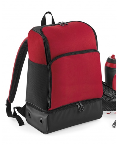 TearAway label for ease of rebranding, front pocket designed for easy decoration, dual compartment design, structured, ventilated base compartment, wipe clean interior, external mesh pocket, internal mesh pockets, padded adjustable mesh shoulder straps, grab handle