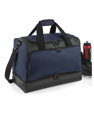 Material: 600D Polyester; Dimensions: 52 x 29 x 40 cm; Capacity: 50 litres; TearAway label for ease of rebranding, front pocket designed for easy decoration, dual compartment design, structured, ventilated base compartment, wipe clean interior, internal valuables pocket, external mesh pocket, internal mesh pockets, detachable adjustable shoulder strap with pad, padded handle