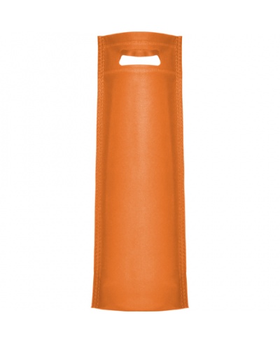 Heat-sealed bag special for bottles, with gusset at base, made of non-woven fabric, with the die-cut handle.