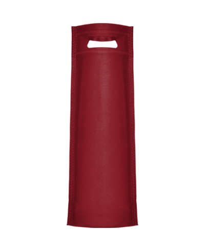 Heat-sealed bag special for bottles, with gusset at base, made of non-woven fabric, with the die-cut handle.