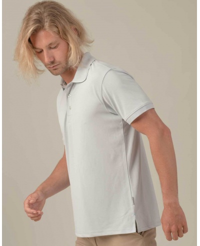 Pique fabric. Three bottons placket. Neck tape in contrast. Side silts in contrast.