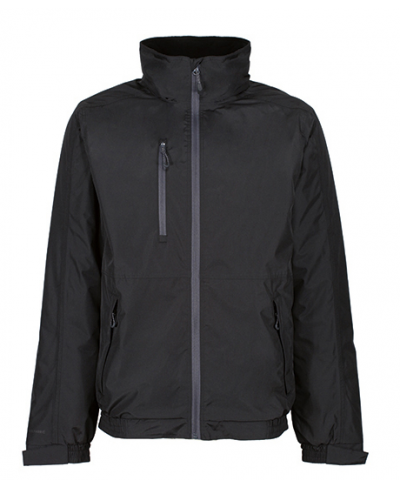 100% recycled waterproof and breathable polyester material Isotex 10,000 with recycled TPU membrane, sealed seams and DWR (durable water repellent) finish for all-weather protection, 100% recycled polyester material with fleece lining, with recycled Thermoguard body insulation 120 gsm, hidden hood, 2 zipped bottom pockets and zipped chest pocket, hidden zipper in the lining for access to embroidery, made of at least 40 plastic bottles