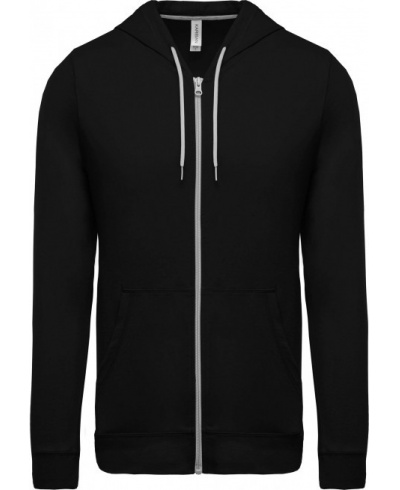 100 % combed cotton enzyme wash (Oxford Grey: 90 % cotton / 10 % viscose). Soft feel fabric. Casual modern style. Contrasting taped neck (Dark Grey for Oxford Grey colourway and Oxford Grey for other colourways). 2 Kangaroo pockets. Self fabric cuffs and hem. Contrasting zip and two-tone drawstring hood.