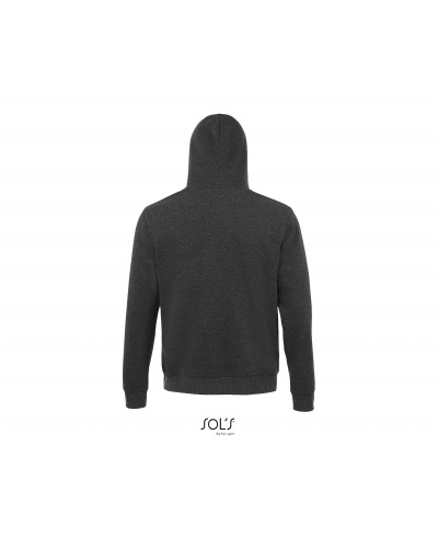 QUALITY: FLEECE 280 LSF (Low Shrinkage Fabric), 80% ringspun cotton, 20% polyester, Brushed lining, Outside: 100% cotton; Set-in sleeves, Front pouch pocket, Cut and sewn, Lined hood with drawcord, 2x2 ribbed cuffs and hem, Half moon inside collar, Taped neck; Certificate: STANDARD 100 by OEKO-TEX®