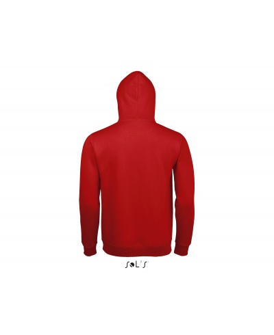 QUALITY: FLEECE 280 LSF (Low Shrinkage Fabric), 80% ringspun cotton, 20% polyester, Brushed lining, Outside: 100% cotton; Set-in sleeves, Front pouch pocket, Cut and sewn, Lined hood with drawcord, 2x2 ribbed cuffs and hem, Half moon inside collar, Taped neck; Certificate: STANDARD 100 by OEKO-TEX®