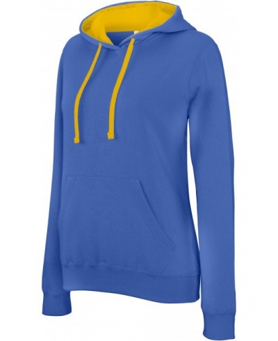 80% combed cotton / 20% polyester. Brushed fleece. Earphone port in kangaroo pocket and neck. Ribbed cuffs and hem. Lined, contrasting hood with drawstring.