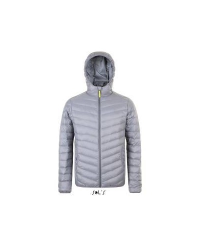 QUALITY: 100% waxed polyamid, lining: 100% polyester 290T, padding: 90% down - 10% feather; Small high collar, 2 front and 2 inside pockets, elasticated hood, bottom and cuffs, "In bag" folding system with stoppers